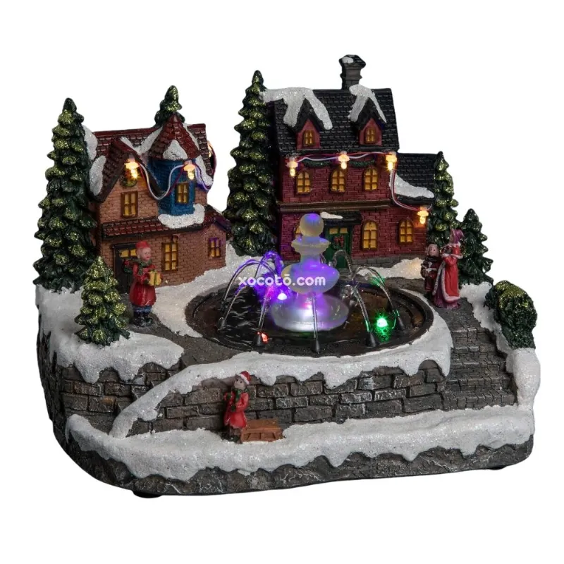Descripción: Sumérgete en la maravillosa atmósfera navideña con la Escena de Navidad “Stortorget”. Este encantador pueblo, esculpido con precisión en poliresina de alta calidad, presenta una animada fuente y niños jugando, creando un rincón festivo lleno de alegría. Con 10 luces brillantes, colores cambiantes y una función hidráulica única, “Stortorget” transformará tu hogar en un lugar lleno de magia.