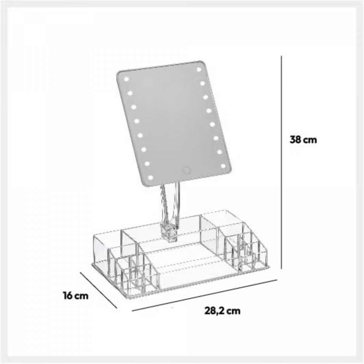 Organizador de Maquillaje con Espejo y 16 LEDs Regulables 28.2×16.4x38cm